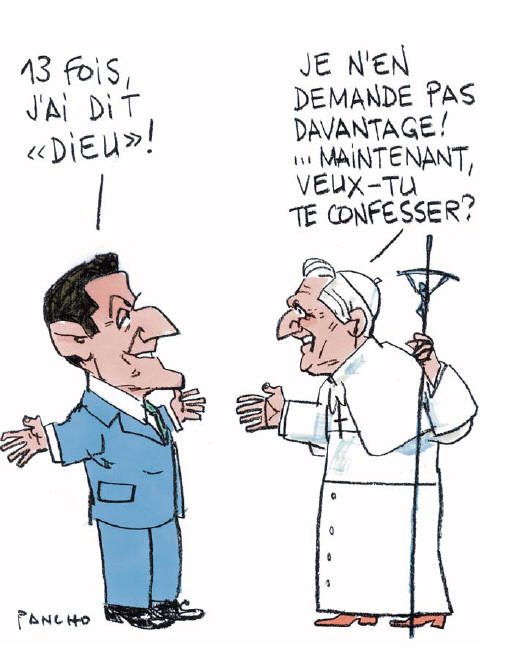 Le 20 décembre 2007 à la basilique Saint-Jean-de-Latran, à Rome. "Les racines de la France sont essentiellement chrétiennes (...). Nous devons tenir ensemble les deux bouts de la chaîne : assumer les racines chrétiennes de la France et même les valoriser, tout en défendant la laïcité parvenue à maturité. (...) Un homme qui croit est un homme qui espère. L'intérêt de la République, c'est qu'il y ait beaucoup d'hommes et de femmes qui espèrent. (...) J'appelle de mes vœux l'avènement d'une laïcité positive, c'est-à-dire une laïcité qui, tout en veillant à la liberté de penser, à celle de croire et de ne pas croire, ne considère pas les religions comme un danger, mais comme un atout.
