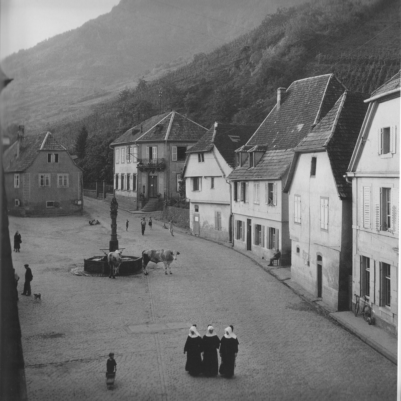 La rumeur approche, VideSensation bizarre en regardant ces photos de Doisneau prise en 45 en Alsace ! Ce n'est pas qu'il s'attarde plus sur des scènes de vie rurale plutôt que sur les destructions de la guerre, qui apparaissent assez peu; non plutôt dans l'inquiétant calme qui semble régner ici, comme si nulle turbulence n'avait pu bousculer la vacuité des lieux !