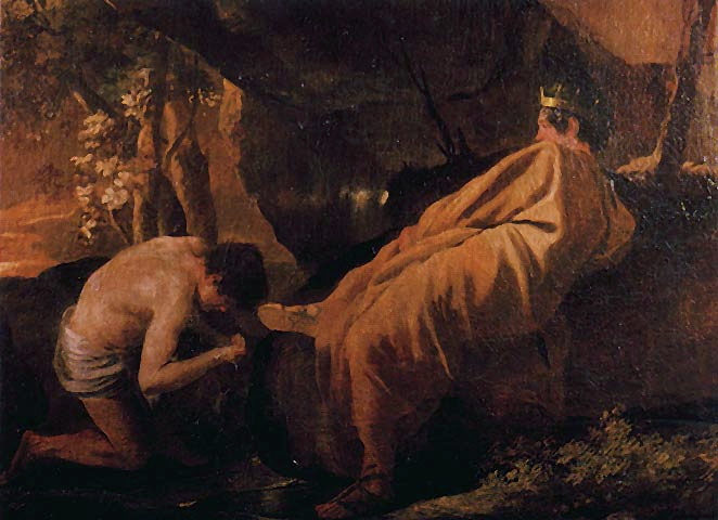 « ... Bacchus permet à Midas, faveur agréable mais pernicieuse, de choisir une récompense à son goût, tant il est heureux d'avoir retrouvé celui qui l'éleva. Midas devait abuser du cadeau: "Fais, dit-il, que tout ce que mon corps aura touché se convertisse en or aux fauves reflets." Liber exauce ce souhait et s'acquitte en lui accordant un privilège qui lui sera funeste, avec le regret qu'il n'ait pas fait un voeu plus sage. Le héros du Bérécynthe s'en va content; il se félicita de ce qui doit faire son malheur et, pour s'assurer que la promesse n'est pas vaine, pour éprouver son pouvoir, il touche tout ce qu'il rencontre; se fiant avec peine à lui-même, il cueille sur une yeuse de faible hauteur un rameau que couvre un vert feuillage: le rameau est devenu un rameau d'or; il ramasse une pierre: la pierre aussi a pris la pâle couleur de l'or ; il touche une motte de terre: à ce contact puissant la motte devient un lingot; il coupe des épis secs, dons de Cérès: sa moisson était d'or; il tient dans Sa main un fruit qu'il vient de cueillir sur un arbre on croirait que c'est un présent des Hespérides; applique-t-il ses doigts sur les hautes portes de son palais, on voit ces portes lancer des rayons; quand Il a baigné ses mains dans une eau limpide, cette eau qui ruisselle de ses mains aurait de quoi tromper Danaé. A peine peut-il lui-même contenir les espérances qui s'offrent à son esprit; dans son Imagination il voit tout en or. Ravi d'aise, il prend place devant la table que ses serviteurs ont chargée de mets et où abonde le froment grillé; mais alors, si sa main touchait les dons de Cérès, les dons de Cérès durcissaient à l'instant; s'il s'apprêtait à déchirer les mets d'une dent avide, ces mets disparaissaient, dès qu'il y portait la dent, sous une lame du fauve métal; s'il mêlait à une eau pure la liqueur du dieu qui l'avait exaucé, on voyait de l'or fondu couler entre ses lèvres ouvertes. Epouvanté d'un mai si nouveau, à la fois riche et misérable, il ne demande plus qu'à fuir tant d'opulence et ce qu'il avait souhaité naguère lui fait horreur. Au milieu de l'abondance, il n'a pas de quoi apaiser sa faim; la soif dessèche et brûle son gosier; il maudit cet or qui lui vaut des tourments trop mérités; levant vers le ciel ses mains et ses bras resplendissants: "pardonne, s'écrie-t-il, dieu des pressoirs, ô notre père; c'est ma faute; mais prends pitié de moi, je t'en supplie; arrache-moi à ce brillant fléau." La puissance des dieux est indulgente; le coupable avouait; Bacchus lui rend sa nature première et retire la faveur que, fidèle à ses engagements, il lui avait accordée: "Tu ne peux pas, lui dit-il, rester enduit de cet or que tu as si imprudemment souhaité; va-t'en vers le fleuve voisin de la grande ville de Sardes et, en remontant son cours entre les hauteurs de ses bords, poursuis ta route jusqu'à ce que tu arrives à l'endroit où il prend naissance; alors, quand tu seras devant sa source écumante, là où il jaillit en flots abondants, immerge ta tête sous les eaux; lave en même temps ton corps et ta faute." Le roi, docile à cet ordre, se plonge dans la source; la vertu qu'il possède de tout changer en or donne aux eaux une couleur nouvelle et passe du corps de l'homme dans le fleuve; aujourd'hui encore, pour avoir reçu le germe de l'antique filon, le soi de ces campagnes est durci par l'or qui jette ses pâles reflets sur la glèbe humide.