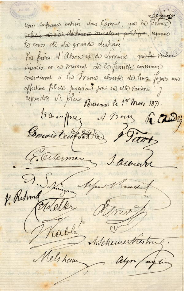 Les députés protestataires de 1871